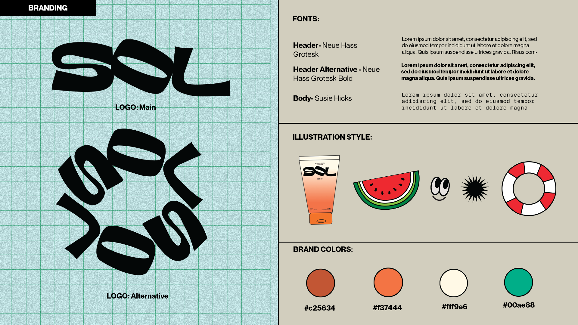 Sol is sunscreen for the Gen Z/millenial audience. The purpose of this project was to bring a new product within its industry and produce high sales within its first launch. In this project, I produced: